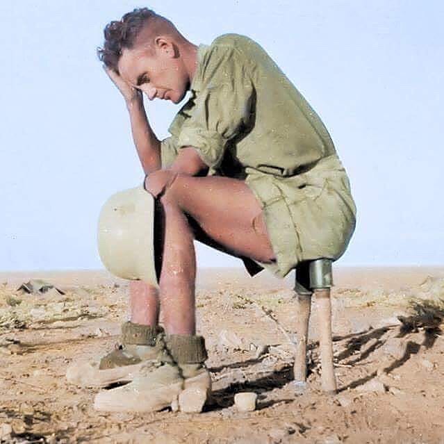 A Deutsche Afrika Korps (DAK) trooper balanced precariously on two M24 Stielhandgranates (Hand Grenades) somewhere in the North African Desert ca.1942/3